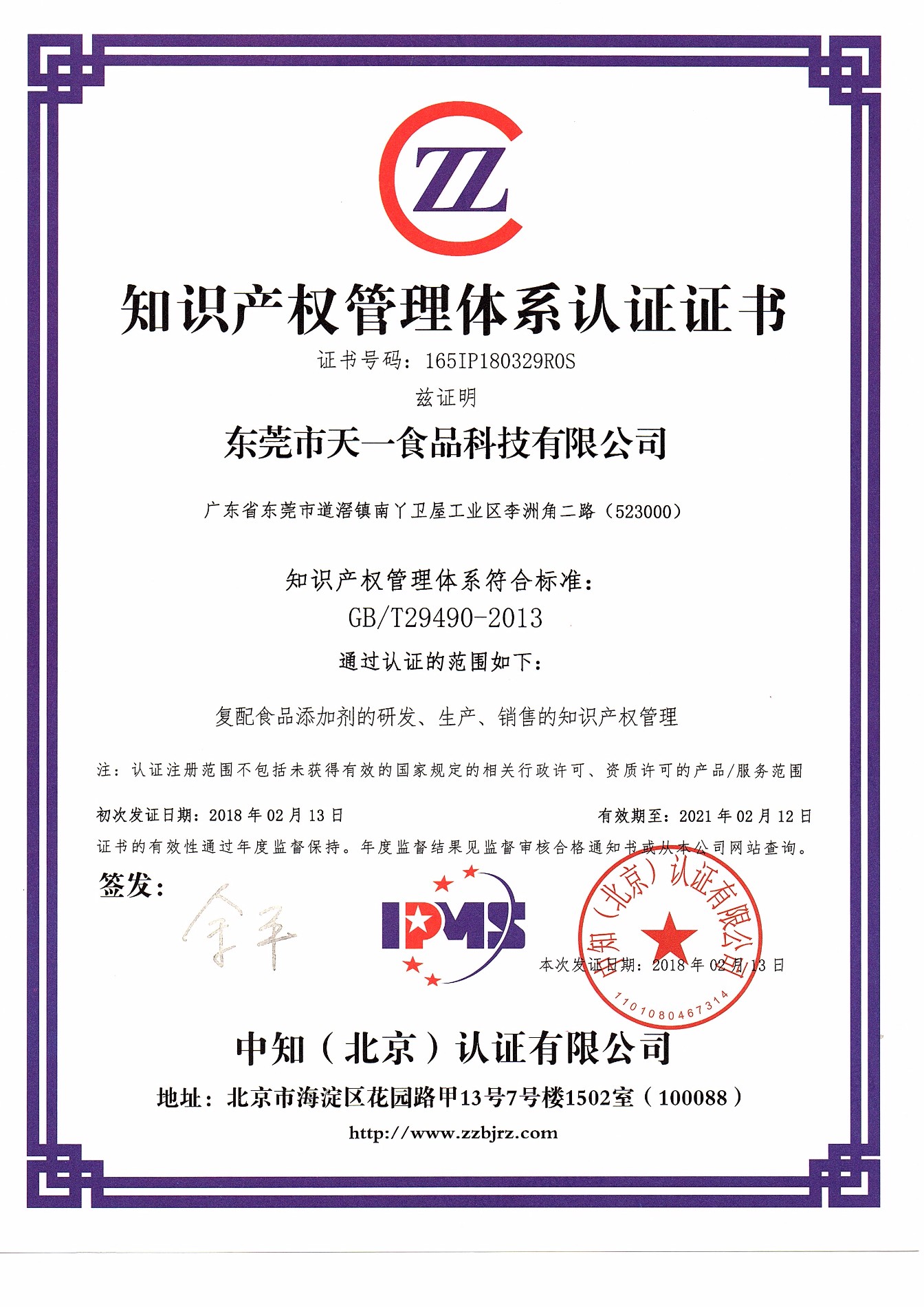 知识产权管理体系认证证书